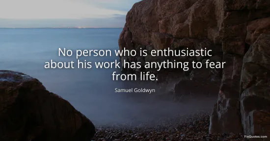 Goldwyn’s line reads like a pep talk, but it’s really a mogul’s creed: the idea that enthusiasm is not just a feeling, it’s a defense system. Coming from a producer who helped industrialize movie magic, “enthusiastic” isn’t about gentle passion or artistic purity. It’s closer to stamina, hustle, and the ability to sell belief - to investors, to stars, to audiences, to yourself. In Hollywood’s early factory-era churn, fear was rational: projects collapsed, tastes changed overnight, reputations were traded like options. Goldwyn’s answer is to fuse identity to labor so tightly that “life” (loss, instability, even meaning) can’t get a clean shot.