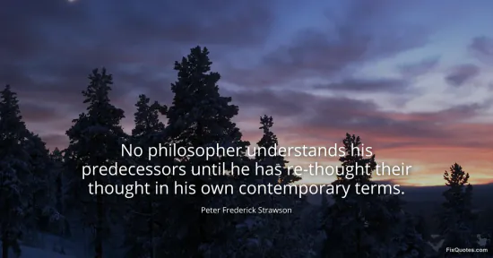 Strawson, Peter Frederick. "No philosopher understands his predecessors until he has re-thought their thought in his own contemporary terms." FixQuotes. January 15, 2026. https://fixquotes.com/quotes/no-philosopher-understands-his-predecessors-until-162344/.