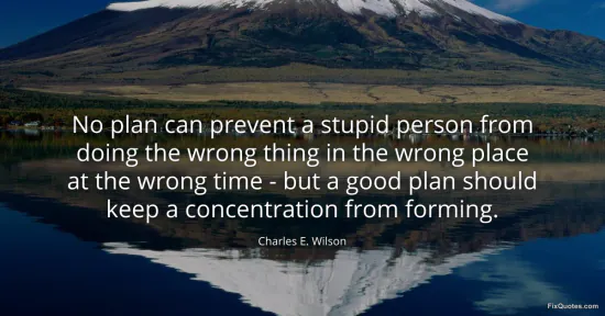 Wilson, Charles E. (2026, January 15). No plan can prevent a stupid person from doing the wrong thing in the wrong place at the wrong time - but a good plan should keep a concentration from forming. FixQuotes. https://fixquotes.com/quotes/no-plan-can-prevent-a-stupid-person-from-doing-139940/