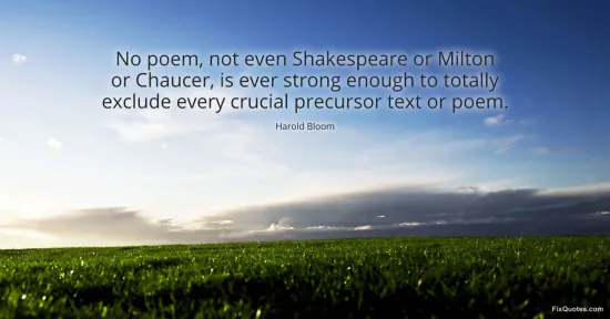Bloom, Harold. "No poem, not even Shakespeare or Milton or Chaucer, is ever strong enough to totally exclude every crucial precursor text or poem." FixQuotes. January 15, 2026. https://fixquotes.com/quotes/no-poem-not-even-shakespeare-or-milton-or-chaucer-111389/.