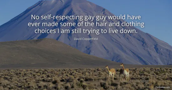 Copperfield, David. "No self-respecting gay guy would have ever made some of the hair and clothing choices I am still trying to live down." FixQuotes. January 16, 2026. https://fixquotes.com/quotes/no-self-respecting-gay-guy-would-have-ever-made-119937/.