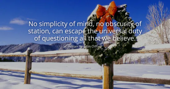 Clifford, William Kingdon. "No simplicity of mind, no obscurity of station, can escape the universal duty of questioning all that we believe." FixQuotes. January 15, 2026. https://fixquotes.com/quotes/no-simplicity-of-mind-no-obscurity-of-station-can-19579/.