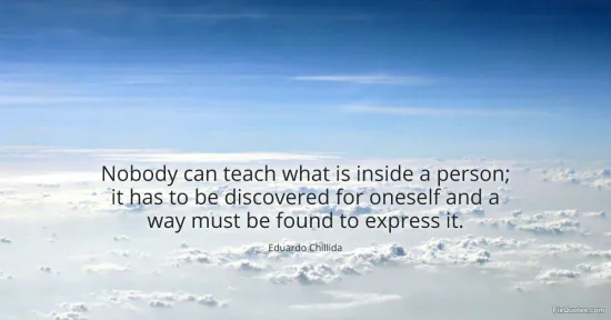 Chillida, Eduardo. "Nobody can teach what is inside a person; it has to be discovered for oneself and a way must be found to express it." FixQuotes. January 17, 2026. https://fixquotes.com/quotes/nobody-can-teach-what-is-inside-a-person-it-has-47091/.