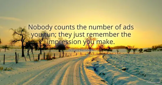 Bernbach, William. (2026, January 15). Nobody counts the number of ads you run; they just remember the impression you make. FixQuotes. https://fixquotes.com/quotes/nobody-counts-the-number-of-ads-you-run-they-just-100082/