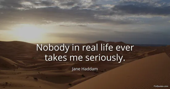 Haddam, Jane. (2026, January 16). Nobody in real life ever takes me seriously. FixQuotes. https://fixquotes.com/quotes/nobody-in-real-life-ever-takes-me-seriously-131625/