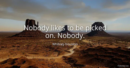 Houston, Whitney. "Nobody likes to be picked on. Nobody." FixQuotes. January 18, 2026. https://fixquotes.com/quotes/nobody-likes-to-be-picked-on-nobody-18286/.
