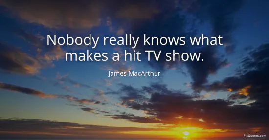 MacArthur, James. (2026, January 17). Nobody really knows what makes a hit TV show. FixQuotes. https://fixquotes.com/quotes/nobody-really-knows-what-makes-a-hit-tv-show-55452/