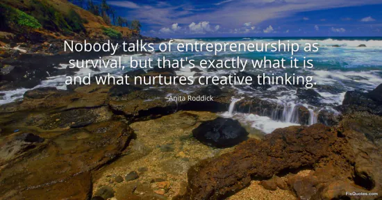Roddick, Anita. (2026, January 18). Nobody talks of entrepreneurship as survival, but that's exactly what it is and what nurtures creative thinking. FixQuotes. https://fixquotes.com/quotes/nobody-talks-of-entrepreneurship-as-survival-but-15585/