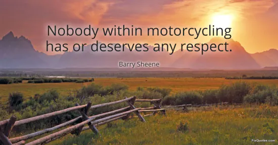 Sheene, Barry. (2026, January 15). Nobody within motorcycling has or deserves any respect. FixQuotes. https://fixquotes.com/quotes/nobody-within-motorcycling-has-or-deserves-any-37644/