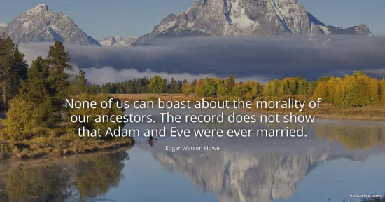 Howe, Edgar Watson. "None of us can boast about the morality of our ancestors. The record does not show that Adam and Eve were ever married." FixQuotes. January 17, 2026. https://fixquotes.com/quotes/none-of-us-can-boast-about-the-morality-of-our-51516/.