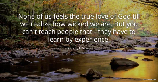 Sayers, Dorothy L. (2026, January 17). None of us feels the true love of God till we realize how wicked we are. But you can't teach people that - they have to learn by experience. FixQuotes. https://fixquotes.com/quotes/none-of-us-feels-the-true-love-of-god-till-we-25887/