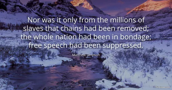 Simpson, Matthew. (2026, January 17). Nor was it only from the millions of slaves that chains had been removed; the whole nation had been in bondage; free speech had been suppressed. FixQuotes. https://fixquotes.com/quotes/nor-was-it-only-from-the-millions-of-slaves-that-63951/