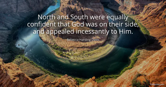 Davis, Rebecca Harding. "North and South were equally confident that God was on their side, and appealed incessantly to Him." FixQuotes. January 16, 2026. https://fixquotes.com/quotes/north-and-south-were-equally-confident-that-god-120765/.