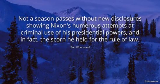 Woodward, Bob. "Not a season passes without new disclosures showing Nixon's numerous attempts at criminal use of his presidential powers, and in fact, the scorn he held for the rule of law." FixQuotes. February 19, 2026. https://fixquotes.com/quotes/not-a-season-passes-without-new-disclosures-46118/.