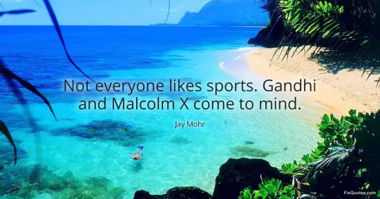Mohr, Jay. (2026, January 15). Not everyone likes sports. Gandhi and Malcolm X come to mind. FixQuotes. https://fixquotes.com/quotes/not-everyone-likes-sports-gandhi-and-malcolm-x-142879/