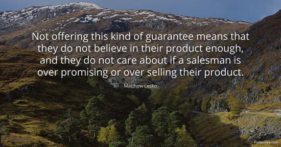 Lesko, Matthew. (2026, January 16). Not offering this kind of guarantee means that they do not believe in their product enough, and they do not care about if a salesman is over promising or over selling their product. FixQuotes. https://fixquotes.com/quotes/not-offering-this-kind-of-guarantee-means-that-105222/