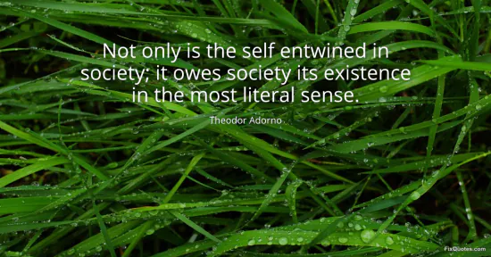 Adorno, Theodor. (2026, January 17). Not only is the self entwined in society; it owes society its existence in the most literal sense. FixQuotes. https://fixquotes.com/quotes/not-only-is-the-self-entwined-in-society-it-owes-28503/