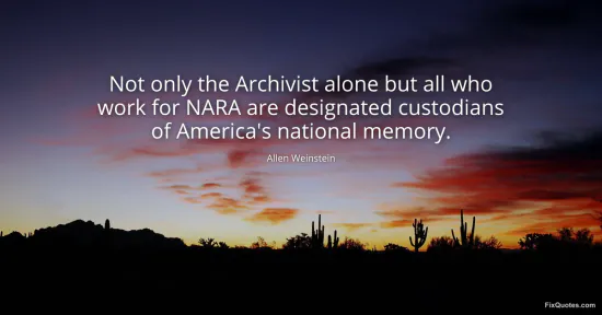 Weinstein, Allen. (2026, January 15). Not only the Archivist alone but all who work for NARA are designated custodians of America's national memory. FixQuotes. https://fixquotes.com/quotes/not-only-the-archivist-alone-but-all-who-work-for-38188/