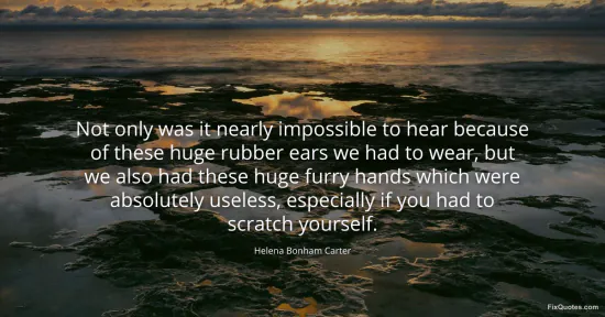 Carter, Helena Bonham. (2026, January 17). Not only was it nearly impossible to hear because of these huge rubber ears we had to wear, but we also had these huge furry hands which were absolutely useless, especially if you had to scratch yourself. FixQuotes. https://fixquotes.com/quotes/not-only-was-it-nearly-impossible-to-hear-because-79733/