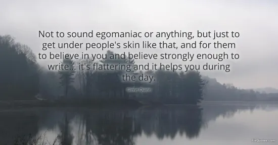 "Not to sound egomaniac or anything, but just to get under people's skin like that, and for them to believe in you and believe strongly enough to write... it's flattering and it helps you during the day." FixQuotes, 16 Jan. 2026, https://fixquotes.com/quotes/not-to-sound-egomaniac-or-anything-but-just-to-132840/. Accessed 12 Feb. 2026.