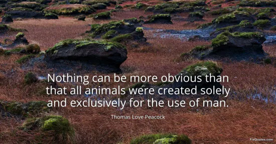 Peacock, Thomas Love. "Nothing can be more obvious than that all animals were created solely and exclusively for the use of man." FixQuotes. January 16, 2026. https://fixquotes.com/quotes/nothing-can-be-more-obvious-than-that-all-animals-102927/.