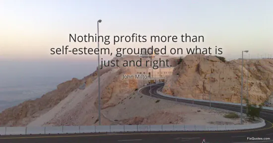 Milton, John. (2026, January 14). Nothing profits more than self-esteem, grounded on what is just and right. FixQuotes. https://fixquotes.com/quotes/nothing-profits-more-than-self-esteem-grounded-on-17815/