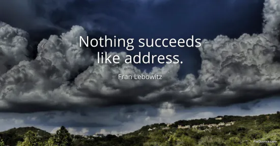 Lebowitz, Fran. (2026, January 15). Nothing succeeds like address. FixQuotes. https://fixquotes.com/quotes/nothing-succeeds-like-address-137457/
