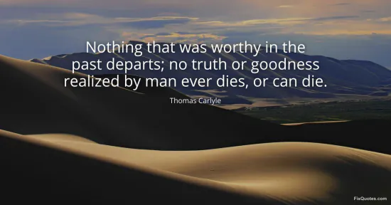 Carlyle, Thomas. (2026, January 17). Nothing that was worthy in the past departs; no truth or goodness realized by man ever dies, or can die. FixQuotes. https://fixquotes.com/quotes/nothing-that-was-worthy-in-the-past-departs-no-33077/