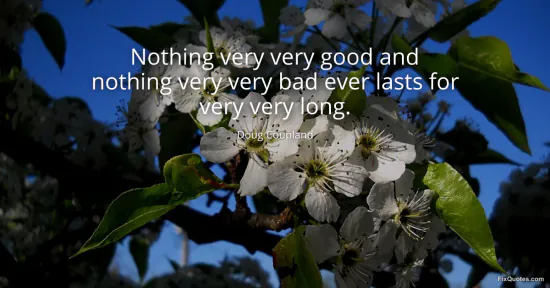 Coupland, Doug. "Nothing very very good and nothing very very bad ever lasts for very very long." FixQuotes. February 8, 2026. https://fixquotes.com/quotes/nothing-very-very-good-and-nothing-very-very-bad-141111/.