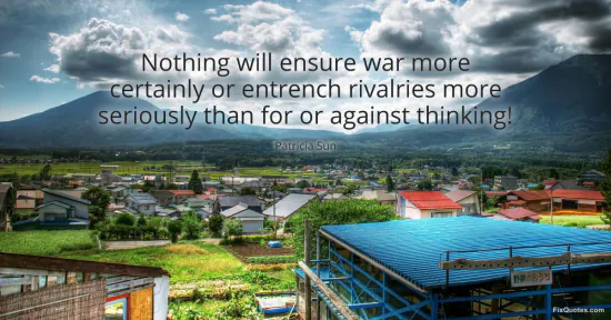 Sun, Patricia. (2026, January 16). Nothing will ensure war more certainly or entrench rivalries more seriously than for or against thinking! FixQuotes. https://fixquotes.com/quotes/nothing-will-ensure-war-more-certainly-or-116460/