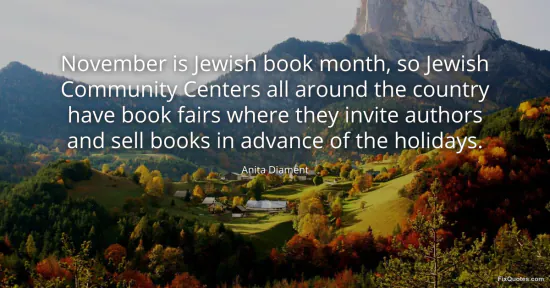 Diament, Anita. (2026, January 17). November is Jewish book month, so Jewish Community Centers all around the country have book fairs where they invite authors and sell books in advance of the holidays. FixQuotes. https://fixquotes.com/quotes/november-is-jewish-book-month-so-jewish-community-34258/