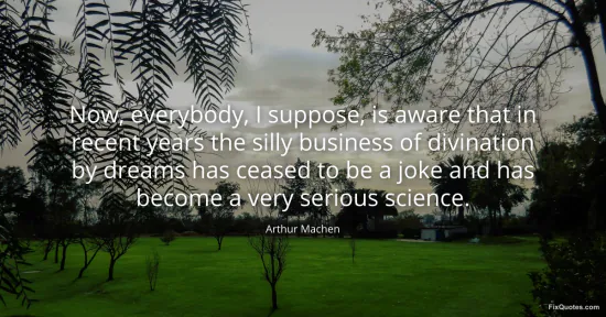 Machen, Arthur. "Now, everybody, I suppose, is aware that in recent years the silly business of divination by dreams has ceased to be a joke and has become a very serious science." FixQuotes. January 16, 2026. https://fixquotes.com/quotes/now-everybody-i-suppose-is-aware-that-in-recent-109170/.