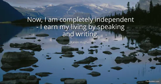 Hughes, Karen. (2026, January 17). Now, I am completely independent - I earn my living by speaking and writing. FixQuotes. https://fixquotes.com/quotes/now-i-am-completely-independent-i-earn-my-78385/