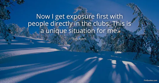 Ayers, Roy. (2026, January 16). Now I get exposure first with people directly in the clubs. This is a unique situation for me. FixQuotes. https://fixquotes.com/quotes/now-i-get-exposure-first-with-people-directly-in-122555/