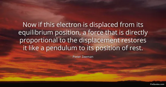 Zeeman, Pieter. "Now if this electron is displaced from its equilibrium position, a force that is directly proportional to the displacement restores it like a pendulum to its position of rest." FixQuotes. January 16, 2026. https://fixquotes.com/quotes/now-if-this-electron-is-displaced-from-its-101813/.
