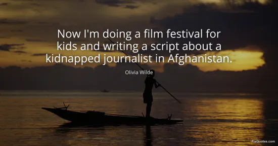 Wilde, Olivia. (2026, January 15). Now I'm doing a film festival for kids and writing a script about a kidnapped journalist in Afghanistan. FixQuotes. https://fixquotes.com/quotes/now-im-doing-a-film-festival-for-kids-and-writing-166358/