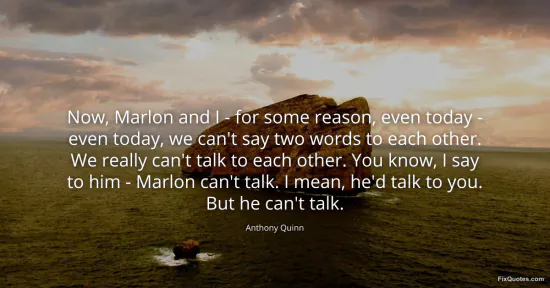 Quinn, Anthony. (2026, January 17). Now, Marlon and I - for some reason, even today - even today, we can't say two words to each other. We really can't talk to each other. You know, I say to him - Marlon can't talk. I mean, he'd talk to you. But he can't talk. FixQuotes. https://fixquotes.com/quotes/now-marlon-and-i-for-some-reason-even-today--60987/
