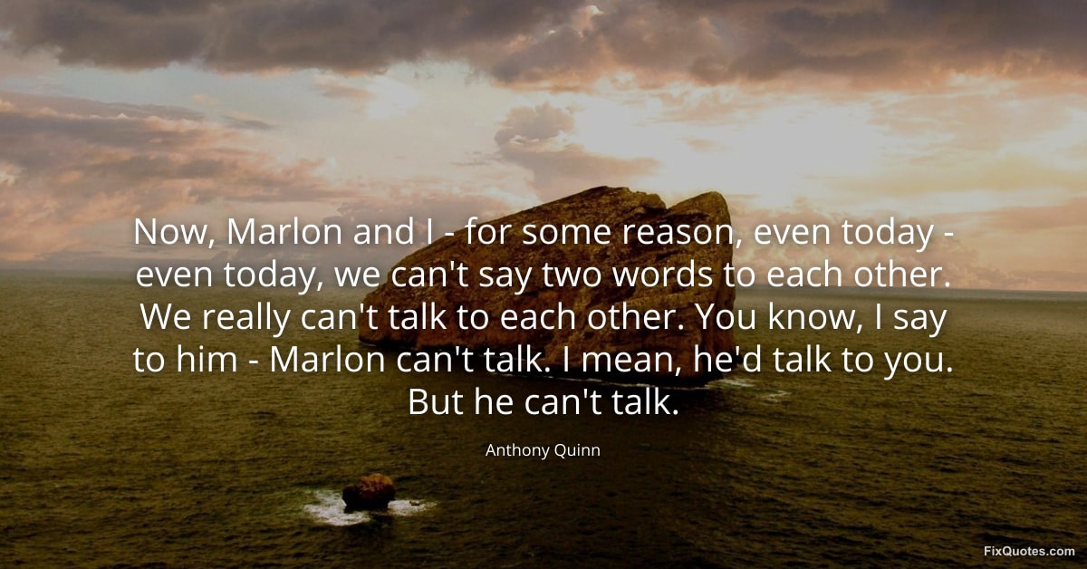 Quinn, Anthony. (2026, January 17). Now, Marlon and I - for some reason, even today - even today, we can't say two words to each other. We really can't talk to each other. You know, I say to him - Marlon can't talk. I mean, he'd talk to you. But he can't talk. FixQuotes. https://fixquotes.com/quotes/now-marlon-and-i-for-some-reason-even-today-60987/