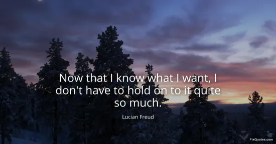 Freud, Lucian. "Now that I know what I want, I don't have to hold on to it quite so much." FixQuotes. January 17, 2026. https://fixquotes.com/quotes/now-that-i-know-what-i-want-i-dont-have-to-hold-69475/.