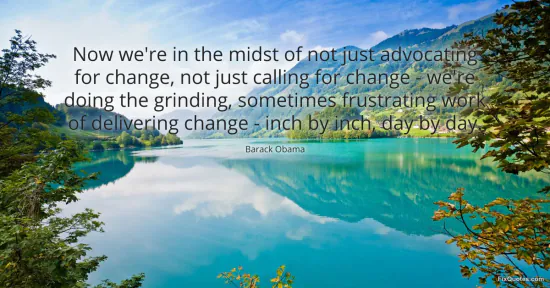 Obama, Barack. "Now we're in the midst of not just advocating for change, not just calling for change - we're doing the grinding, sometimes frustrating work of delivering change - inch by inch, day by day." FixQuotes. January 16, 2026. https://fixquotes.com/quotes/now-were-in-the-midst-of-not-just-advocating-for-135805/.