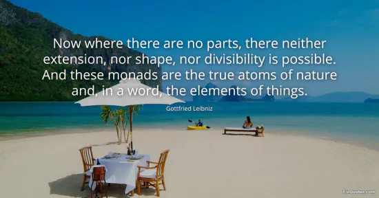 Leibniz, Gottfried. "Now where there are no parts, there neither extension, nor shape, nor divisibility is possible. And these monads are the true atoms of nature and, in a word, the elements of things." FixQuotes. January 18, 2026. https://fixquotes.com/quotes/now-where-there-are-no-parts-there-neither-425/.