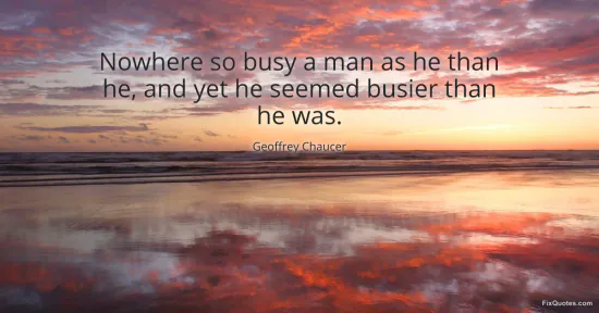 Chaucer, Geoffrey. (2026, January 16). Nowhere so busy a man as he than he, and yet he seemed busier than he was. FixQuotes. https://fixquotes.com/quotes/nowhere-so-busy-a-man-as-he-than-he-and-yet-he-132792/