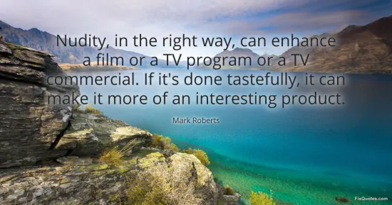Roberts, Mark. "Nudity, in the right way, can enhance a film or a TV program or a TV commercial. If it's done tastefully, it can make it more of an interesting product." FixQuotes. February 16, 2026. https://fixquotes.com/quotes/nudity-in-the-right-way-can-enhance-a-film-or-a-148994/.