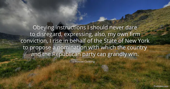 Conkling’s sentence is politics as stagecraft: a bow to “instructions” that flatters party machinery while quietly advertising that he, too, is a man of “firm conviction.” The opening clause performs obedience to the delegation and, more importantly, to the unwritten rules of the convention hall. He’s signaling he is disciplined enough to serve the machine, even as he claims the moral posture of someone who is not merely carrying water.
