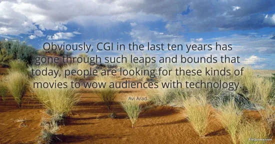 Arad frames CGI as "leaps and bounds", language borrowed from progress narratives and Silicon Valley hype cycles. The subtext is industrial: if visual effects are improving fast, then studios should build films that foreground them, and investors should see that as a safe bet. Notice the phrasing "these kinds of movies" - it airbrushes away specificity (story, character, risk) in favor of a category: the tech-forward tentpole. "Wow" is the operative verb, a consumer metric masquerading as an artistic goal.