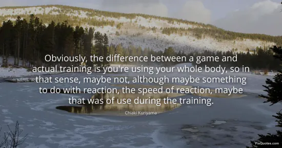 Kuriyama, Chiaki. "Obviously, the difference between a game and actual training is you're using your whole body, so in that sense, maybe not, although maybe something to do with reaction, the speed of reaction, maybe that was of use during the training." FixQuotes. January 14, 2026. https://fixquotes.com/quotes/obviously-the-difference-between-a-game-and-110073/.