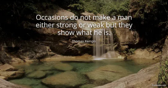 Kempis, Thomas. "Occasions do not make a man either strong or weak but they show what he is." FixQuotes. January 18, 2026. https://fixquotes.com/quotes/occasions-do-not-make-a-man-either-strong-or-weak-11631/.