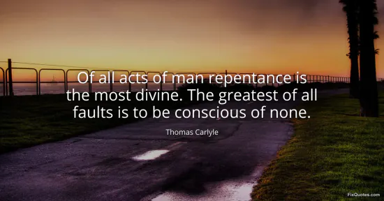 Carlyle, Thomas. "Of all acts of man repentance is the most divine. The greatest of all faults is to be conscious of none." FixQuotes. January 17, 2026. https://fixquotes.com/quotes/of-all-acts-of-man-repentance-is-the-most-divine-34569/.