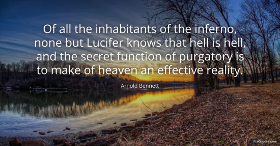 Bennett, Arnold. (2026, January 17). Of all the inhabitants of the inferno, none but Lucifer knows that hell is hell, and the secret function of purgatory is to make of heaven an effective reality. FixQuotes. https://fixquotes.com/quotes/of-all-the-inhabitants-of-the-inferno-none-but-37540/