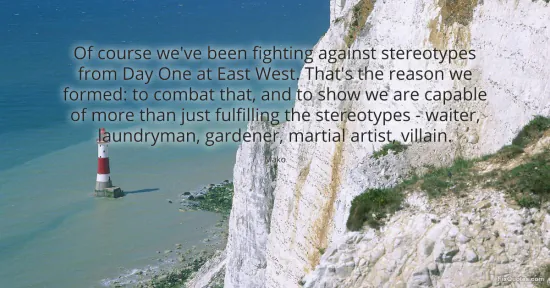 Mako. "Of course we've been fighting against stereotypes from Day One at East West. That's the reason we formed: to combat that, and to show we are capable of more than just fulfilling the stereotypes - waiter, laundryman, gardener, martial artist, villain." FixQuotes. January 15, 2026. https://fixquotes.com/quotes/of-course-weve-been-fighting-against-stereotypes-147547/.